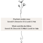 Prochain week-end d’ouverture : 9, 10 & 11 mai